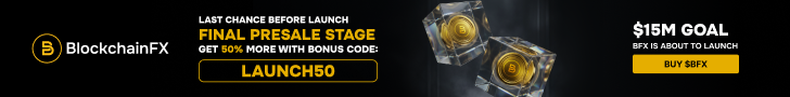 Begin je reis door vandaag nog deel te nemen aan de BlockchainFX presale. De huidige prijs is slechts $0,035, maar de lanceringsprijs is vastgesteld op $0,05. Grijp de 50% extra tokens met code LAUNCH50 en begin met het verdienen van verwijzingsbeloningen. Laat dit niet weer een verhaal worden van een gemiste kans.